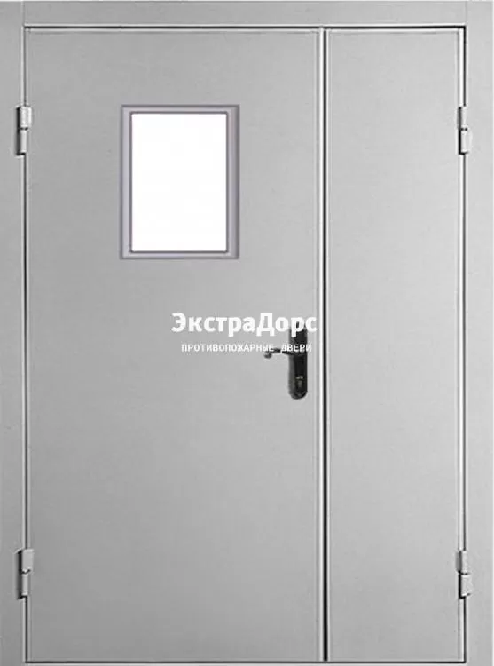 Противопожарная дверь EI 60 ДО-02-EI-60 полуторная остеклённая с квадратным окном и лотком