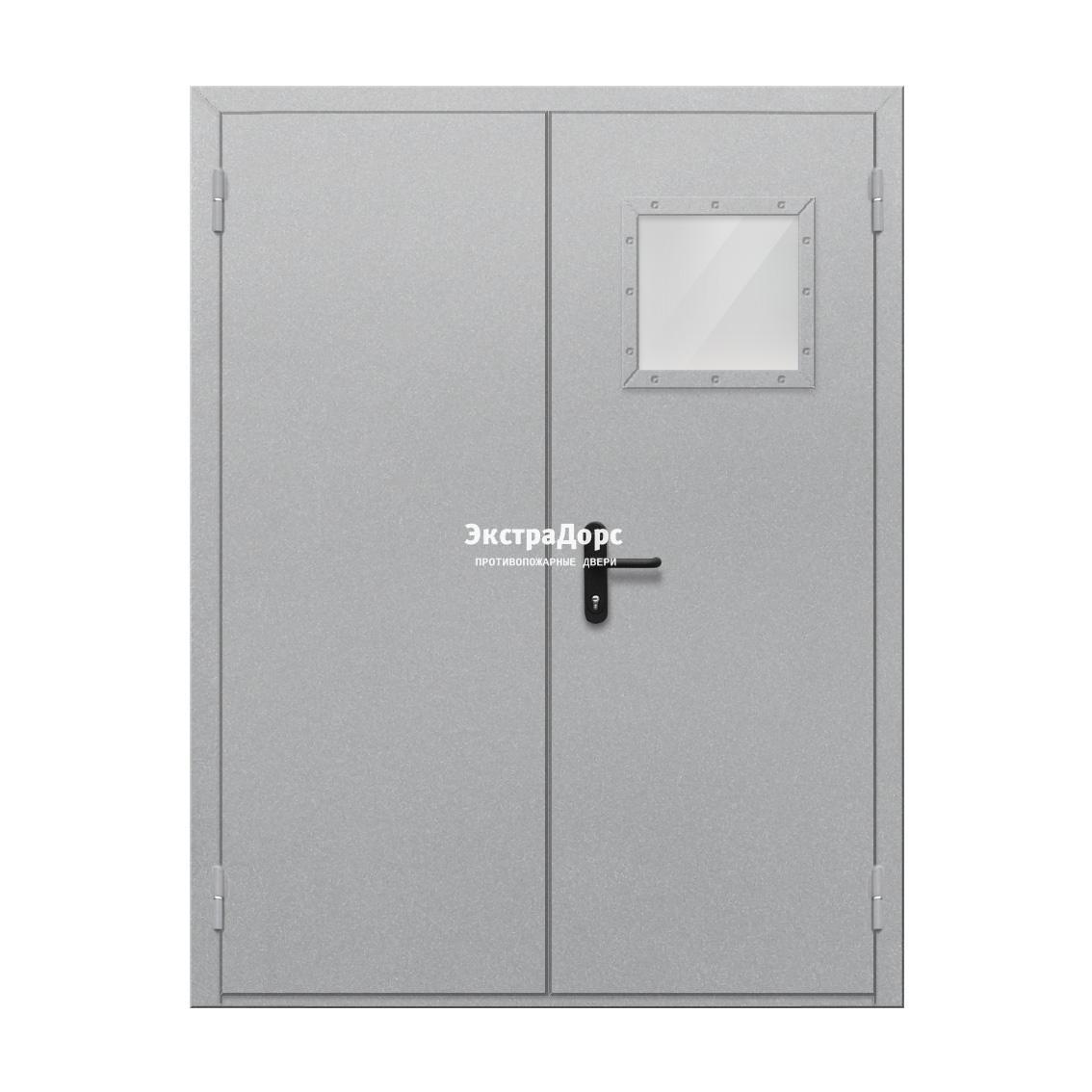 Двупольная огнеупорная дверь EI 30 ДО-02-EI-30 двупольная остеклённая с квадратным окном в Подольске