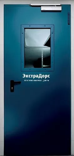 Противопожарная дверь без порога металлическая однопольная с остеклением