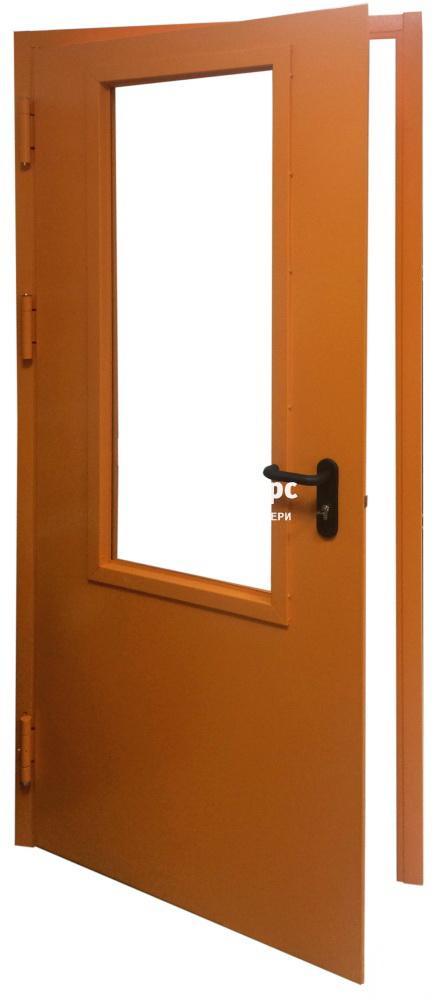 Противопожарная дверь беспороговая оранжевая с остеклением в Подольске