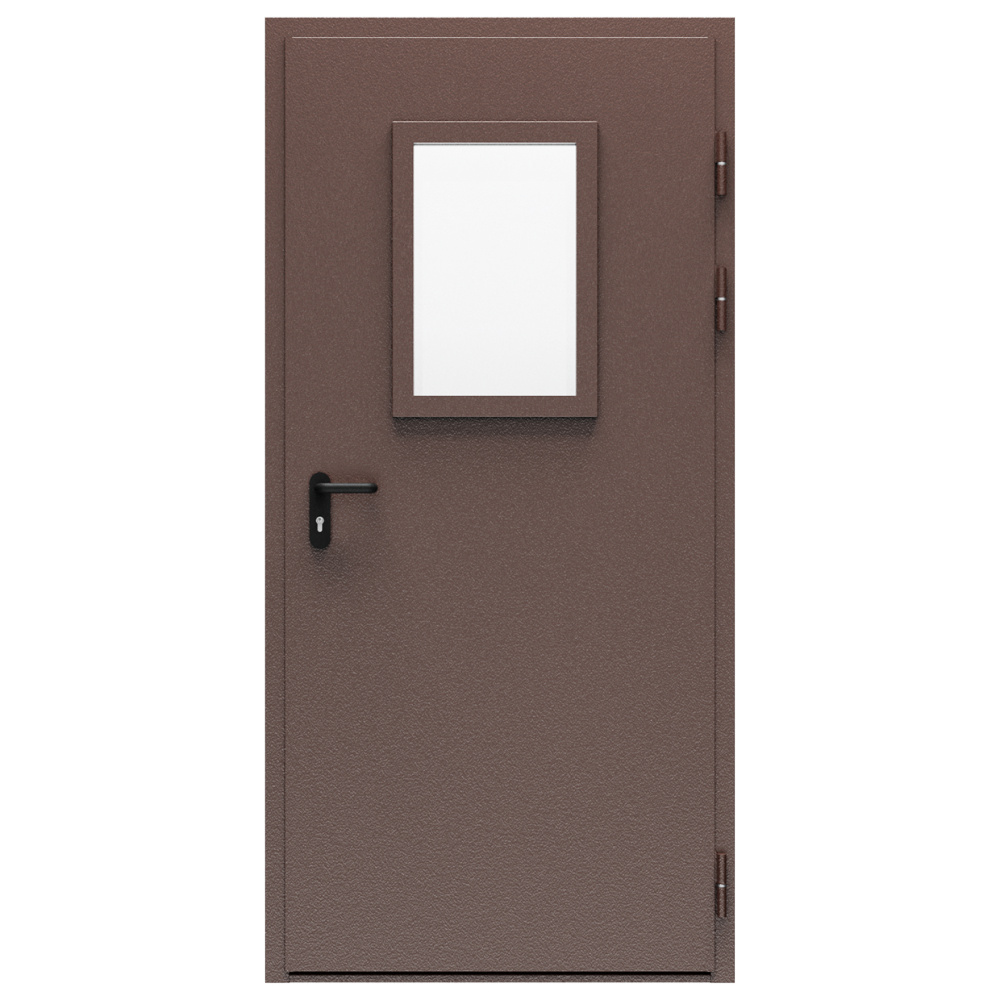 Герметичная дверь огнестойкая коричневая со стеклом – надежное решение для защиты вашего объекта от пожара. Эта противопожарная дверь сертифицирована по классу огнестойкости , что гарантирует эффективную защиту от распространения огня и дыма в течение времени эвакуации. Прочная однопольная конструкция в сочетании с полотном толщиной 50 мм и стальным листом 1,5 мм (2 шт.) создает непреодолимый барьер для огня. Дверное полотно установлено в надежную коробку, а специальный уплотнитель предотвращает проникновение дыма. Размер подходит для большинства проемов. При необходимости мы можем выполнить дверь в любом другом размере под ваш запрос. Стильная отделка и шоколадно-коричневый (ral-8017) цвет делают дверь эстетически привлекательной. Эта противопожарная дверь – идеальное решение для любого помещения. Герметичная дверь огнестойкая коричневая со стеклом - это не просто дверь, это – гарантия безопасности, подтвержденная всеми необходимыми сертификатами. Сделайте правильный выбор в пользу безопасности! Наши специалисты помогут подобрать оптимальную комплектацию и организуют доставку с последующим монтажом в удобное для вас время.