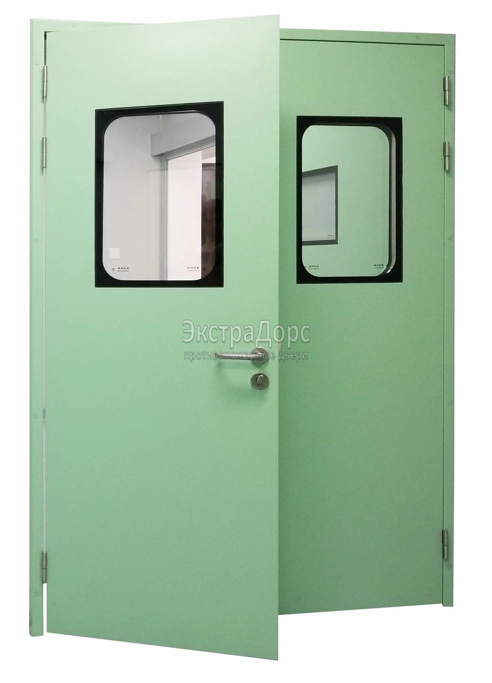 Двухстворчатая огнестойкая дверь EIW 60 зеленая со стеклом в Подольске