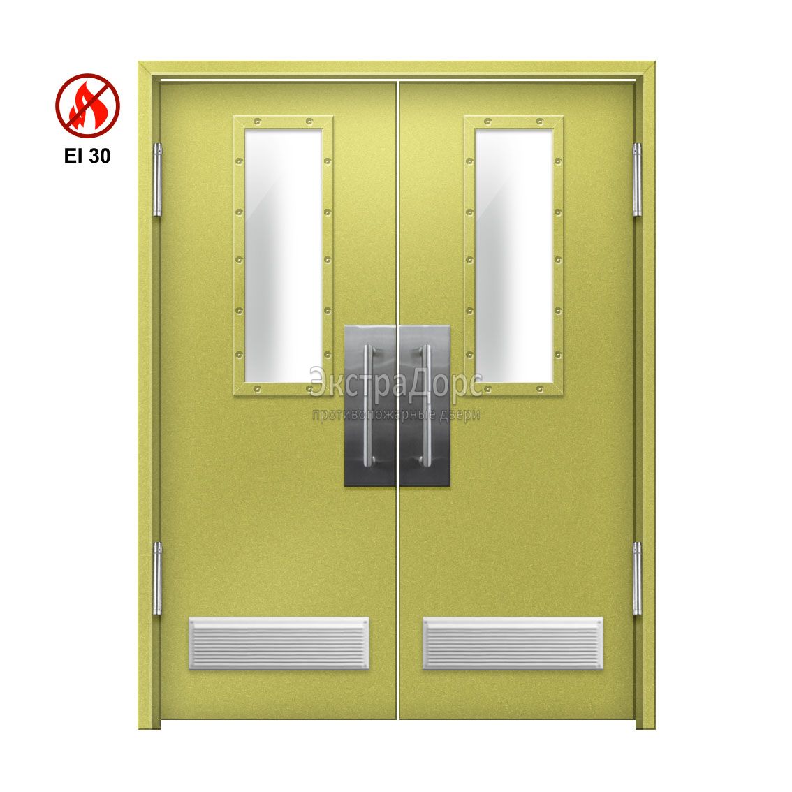 Маятниковая противопожарная утепленная дверь полуторная EI 30 ДОП-EI30 с решеткой ДП29