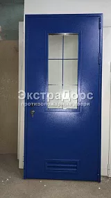 Дверь противопожарная металлическая однопольная EI 60 ДО-01-EI-60 остеклённая с решёткой и прямоугольным окном