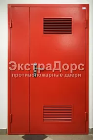 Противопожарная дверь с решетками EI 60 ДПМ-02 двупольная красная