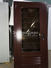 Противопожарная дверь с решёткой EI 30 ДО-01-EI-30 однопольная остеклённая с антипаникой