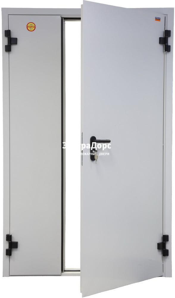 Противопожарная дверь 1 типа металлическая двупольная c выпадающим порогом белая в Подольске