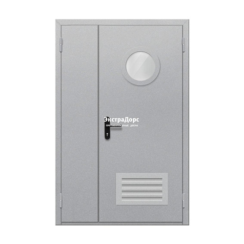Противопожарная дверь EI 30 ДО-02-EI-30 полуторная остеклённая с иллюминатором и решёткой