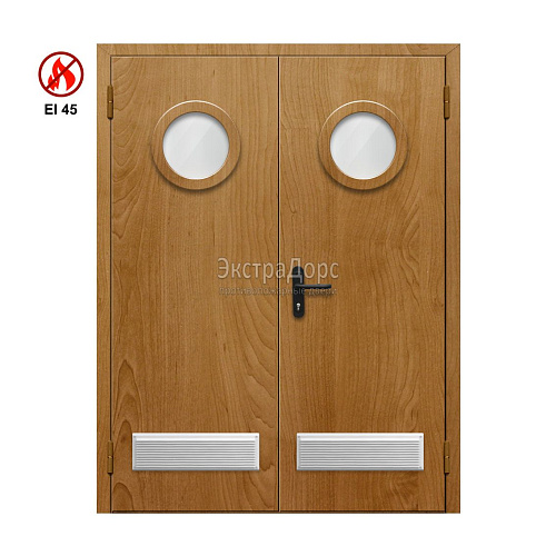 Двупольная огнеупорная дверь EI 45 ДОП-02-EI45 ДП130 двупольная остекленная с решеткой