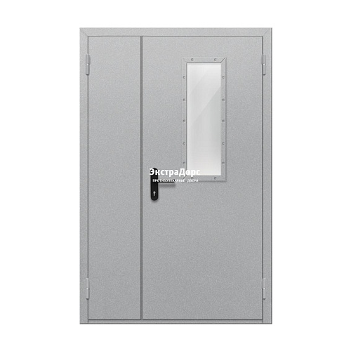 Противопожарная дверь EI 60 ДО-02-EI-60 полуторная остеклённая с прямоугольным окном