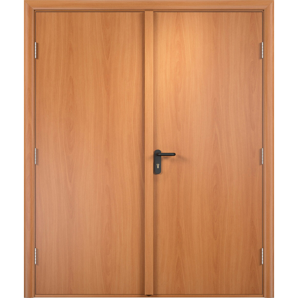 Двухстворчатая огнестойкая дверь EI 30 ДГ-02-EI-30 двупольная глухая входная с МДФ и резьбой