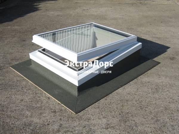 Черный противопожарный люк на кровлю с прозрачной крышкой