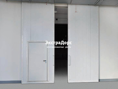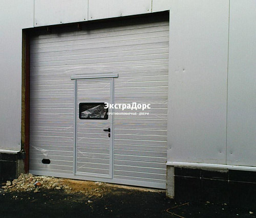Подъемные противопожарные ворота с калиткой и окном
