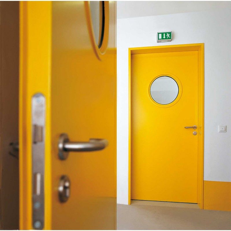 Противопожарная алюминиевая дверь со стеклом желтого цвета в Подольске